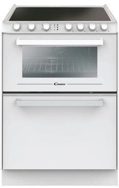 : CandySporák sklokeramická doska, klasický dizajn, šírka 6cm, počet platničiek: 4, farba: biela, energetická trieda A, objem 38l, programy rúry: gril a ventilátor, časovač,